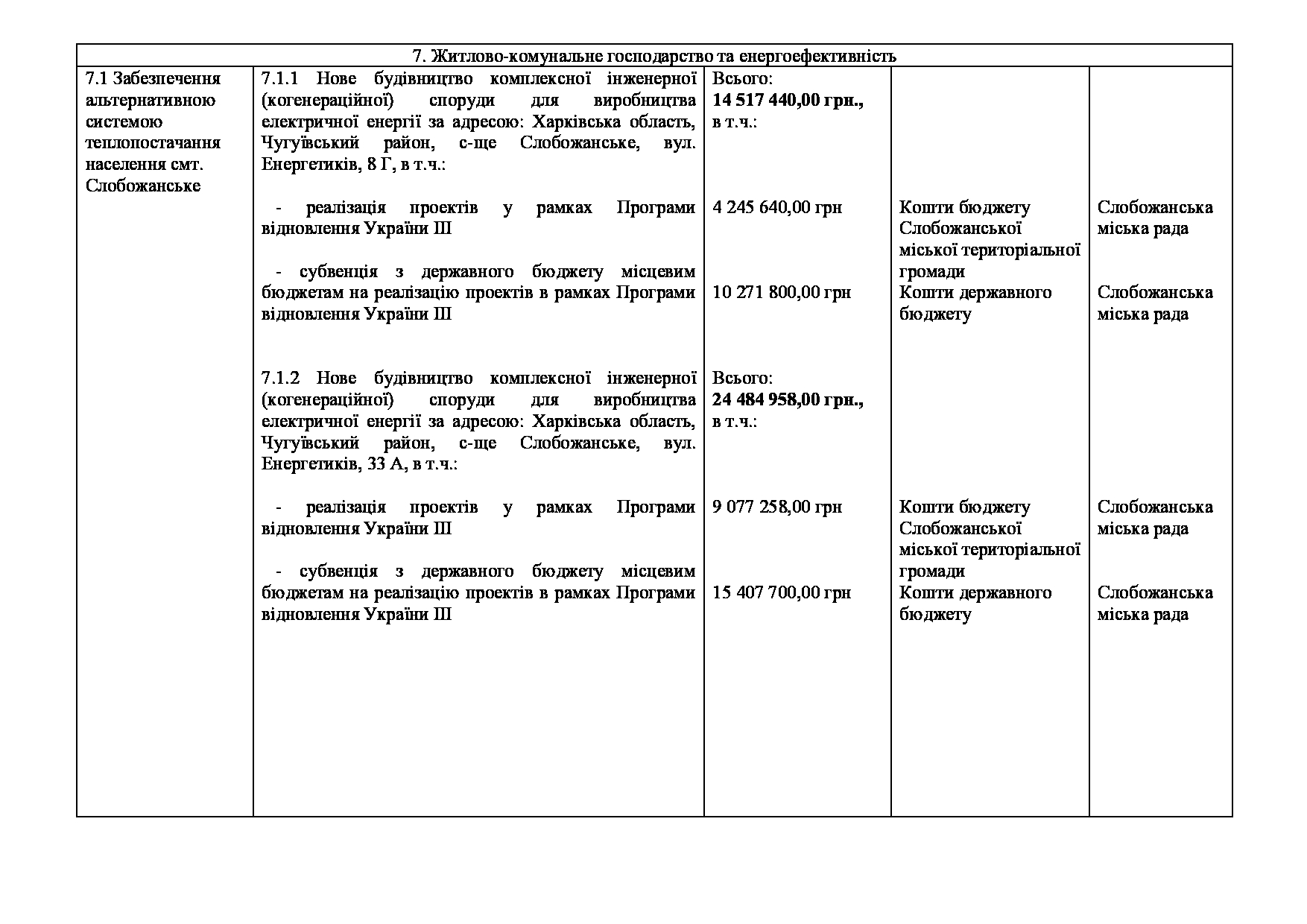 Текст рішення сесії №3561 Про внесення змін та доповнень до Заходів на 2026 рік до Програми розвитку та реформування житлово-комунального господарства Слобожанської міської територіальної громади Чугуївського району Харківської області на 2026-2030 роки