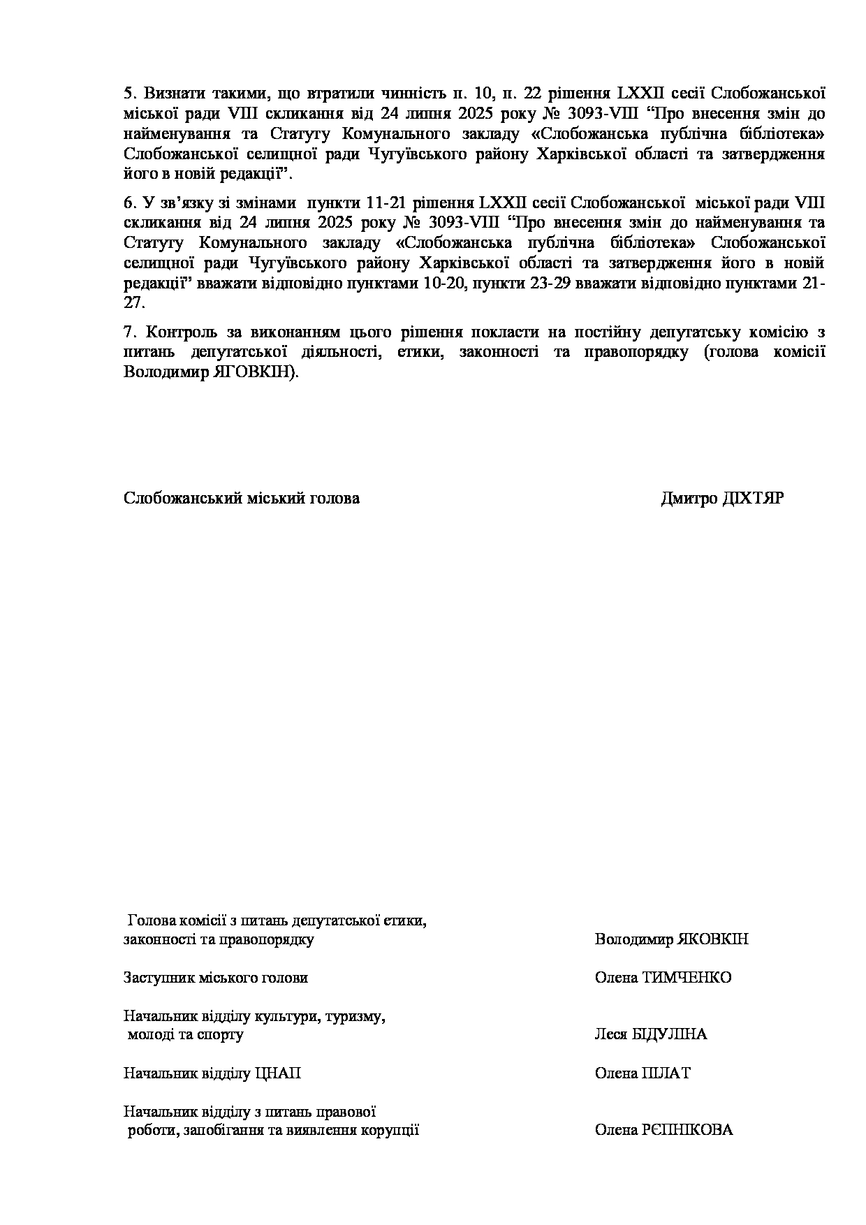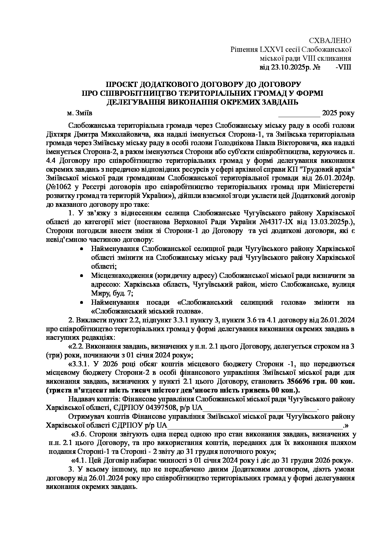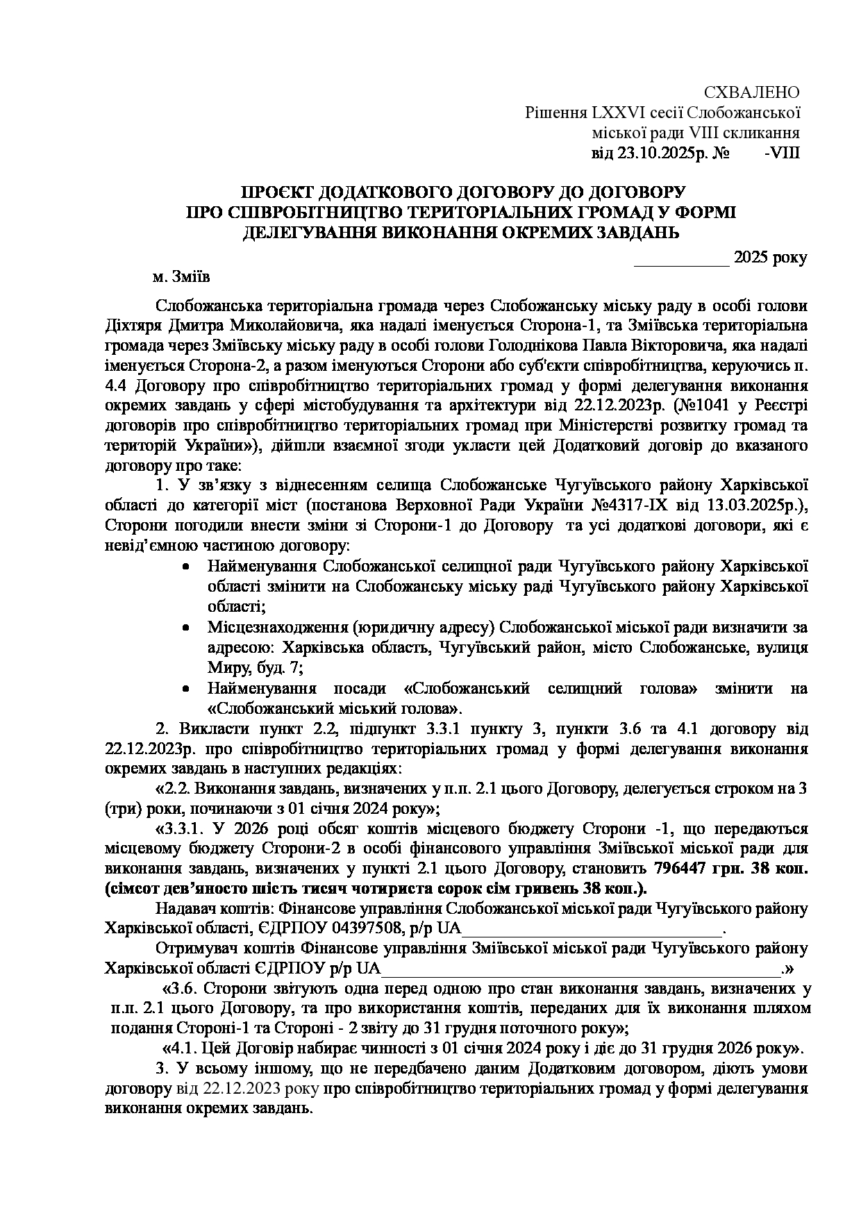 Текст проекту рішення сесії №026 Про затвердження звіту «Про виконання бюджету Слобожанської селищної територіальної громади за 9 місяців 2025 року».