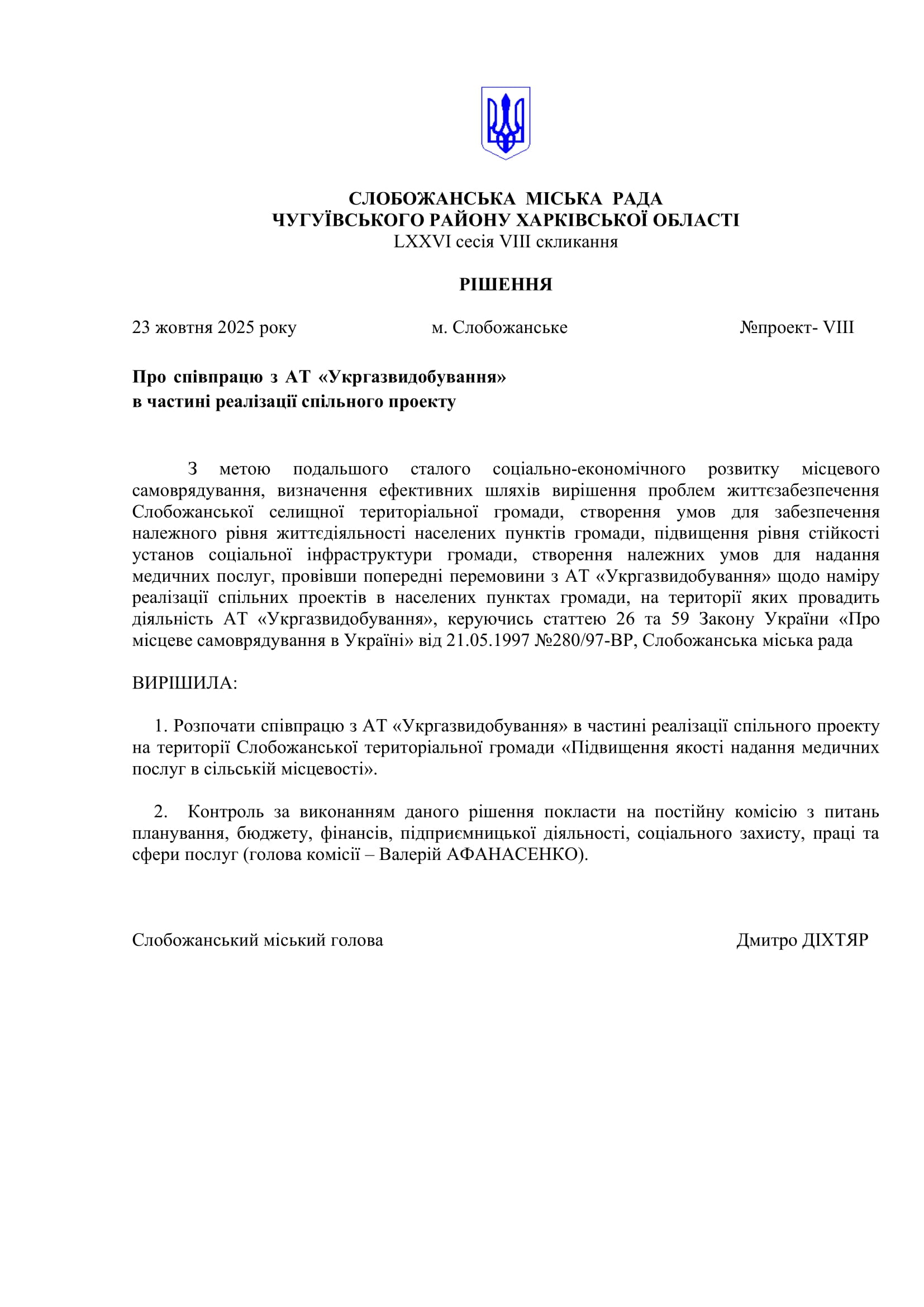 Текст проекту рішення сесії №036 Про співпрацю з АТ "Укргазвидобування" в частині реалізації спільного проєкту