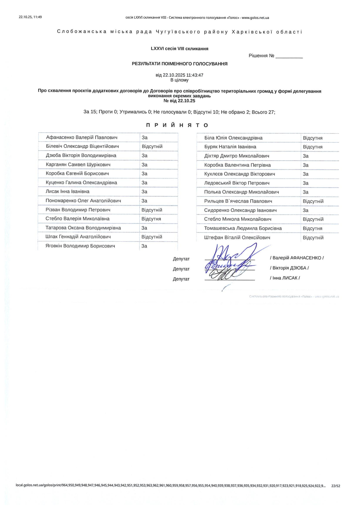 Відомості голосування до рішення сесії №3251 Про схвалення проєктів додаткових договорів до Договорів про співробітництво територіальних громад у формі делегування виконання окремих завдань.