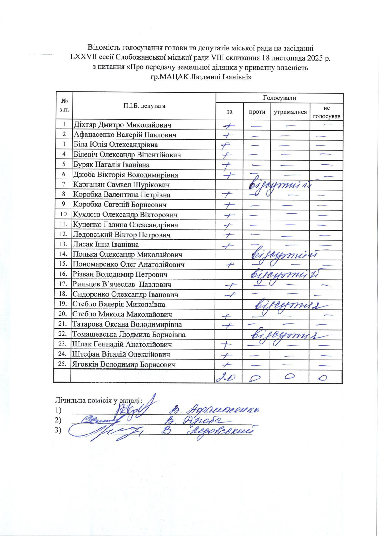 Відомості голосування до рішення сесії №3307 Про передачу земельної ділянки у приватну власність гр.МАЦАК Людмилі Іванівні