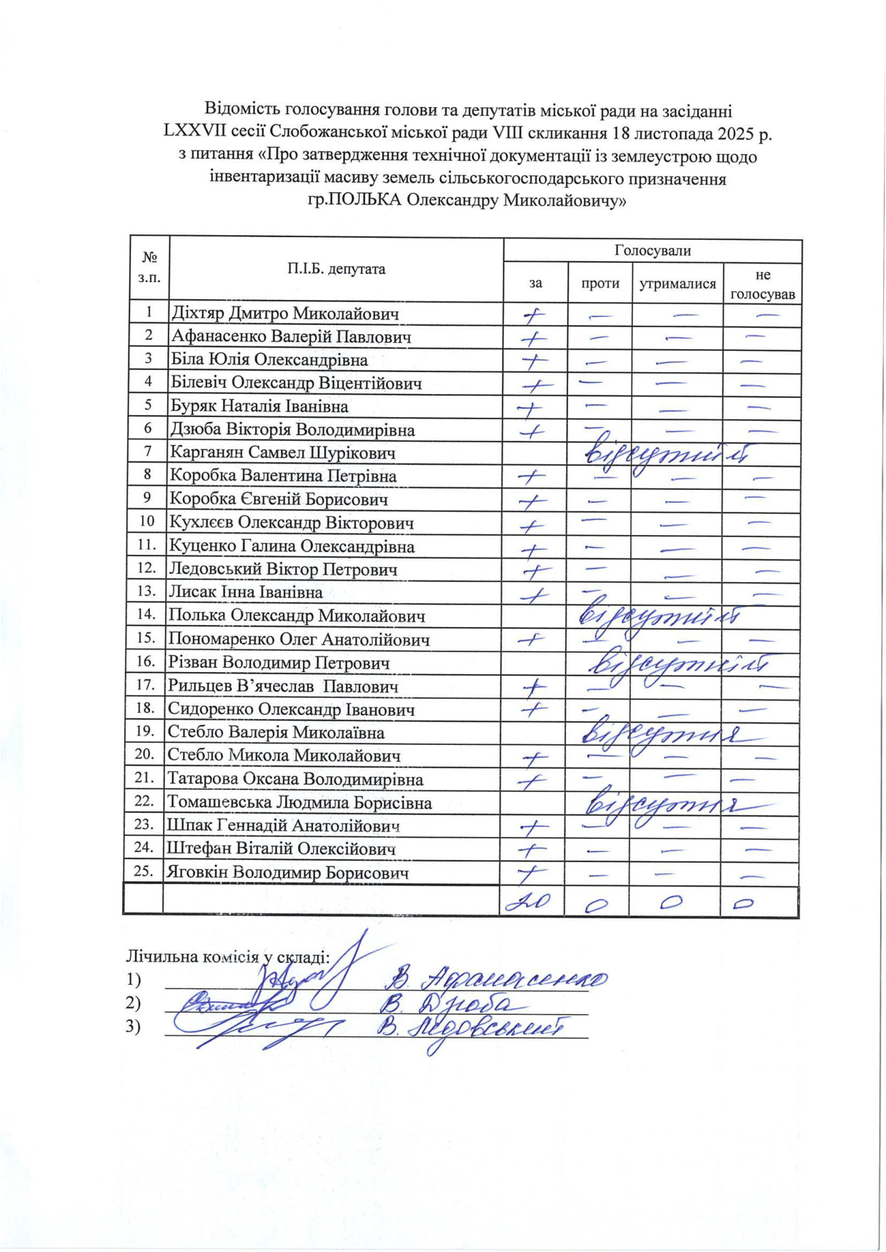 Відомості голосування до рішення сесії №3314 Про затвердження технічної документації із землеустрою щодо інвентаризації масиву земель сільськогосподарського призначення гр.ПОЛЬКА Миколі Миколайовичу
