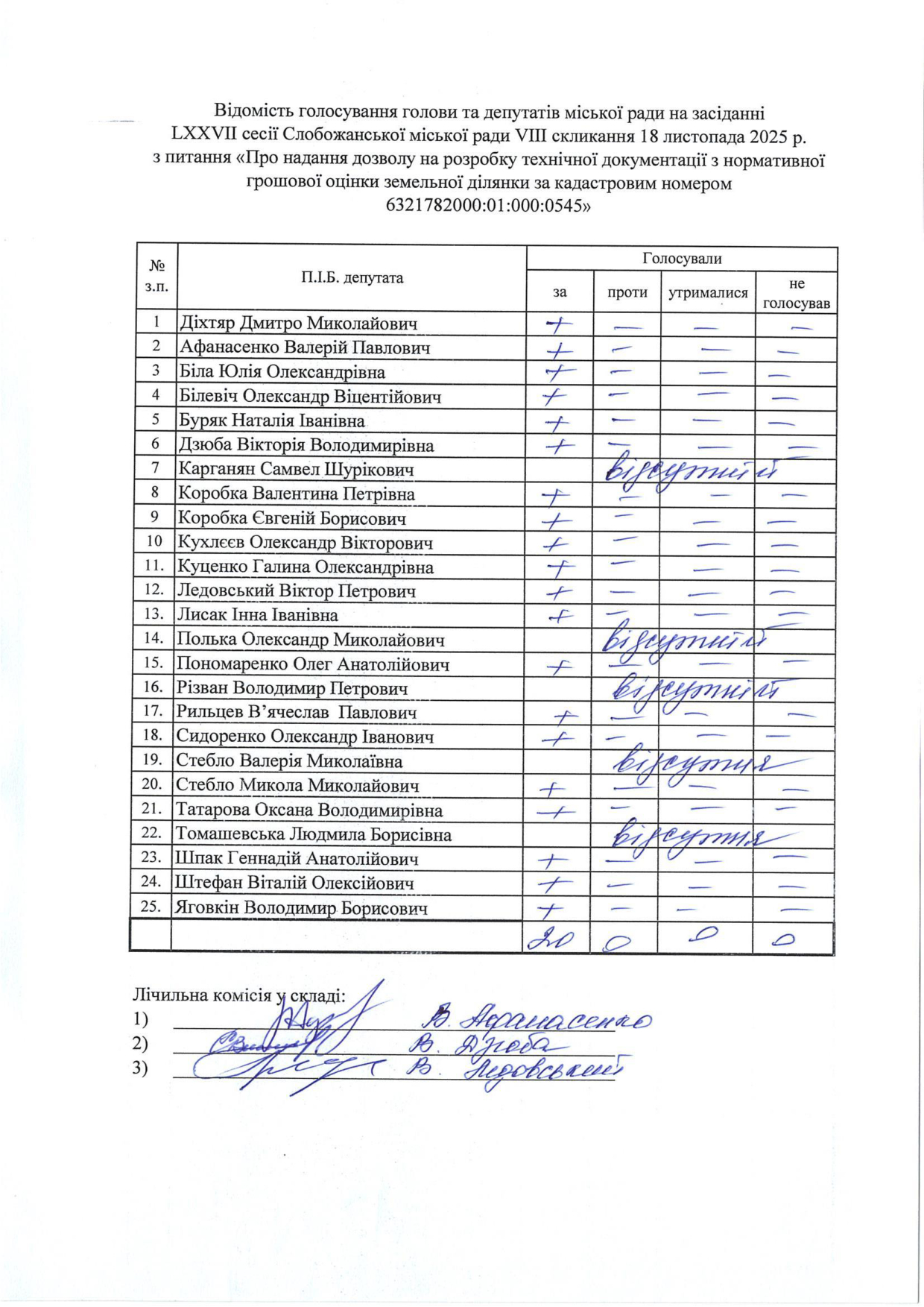 Відомості голосування до рішення сесії №3311 Про затвердження проекту землеустрою щодо зміни цільового призначення земельної ділянки з кадастровим номером 6321782000:01:000:0545