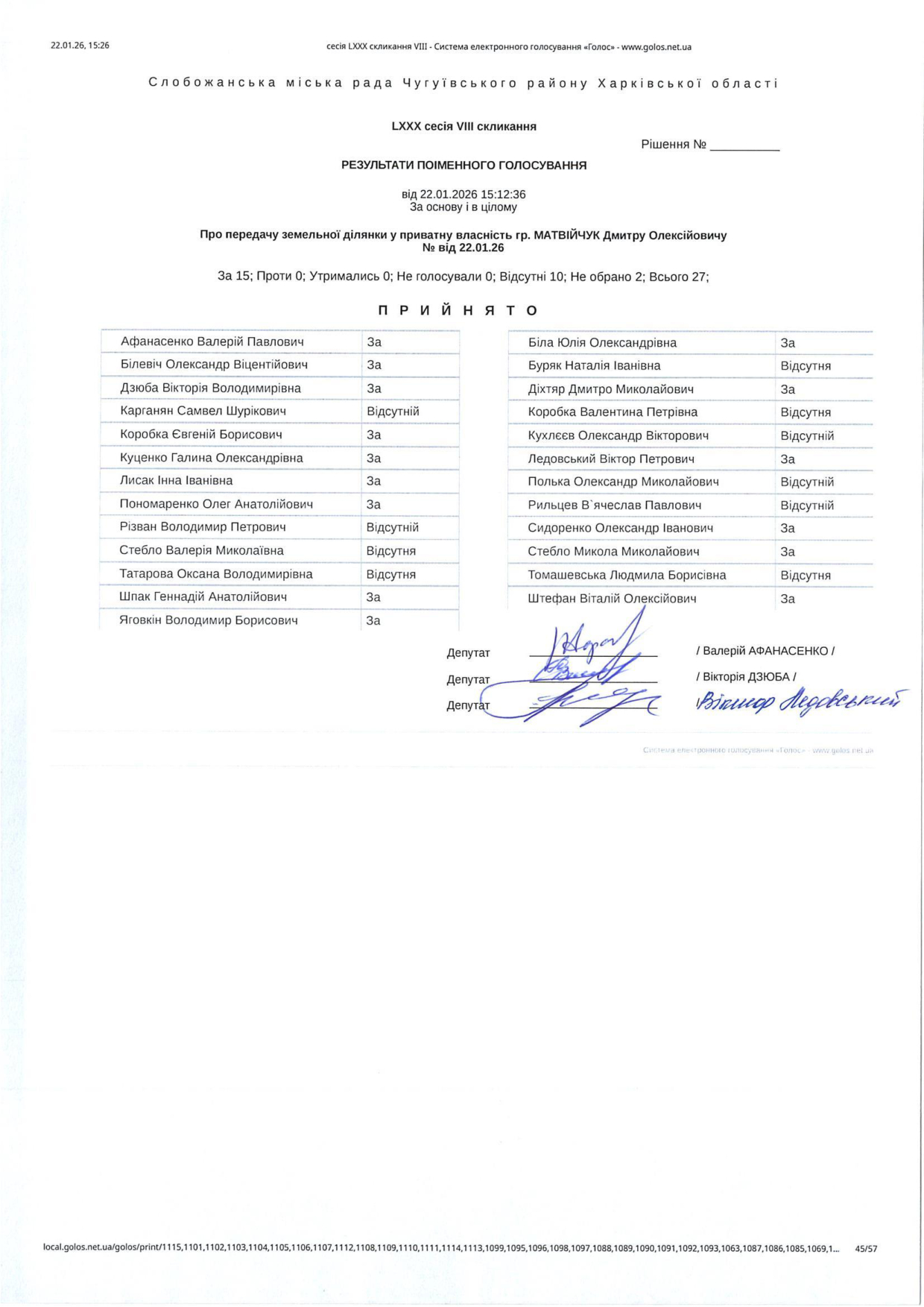 Відомості голосування до рішення сесії №3468 Про передачу земельної ділянки у приватну власність гр. МАТВІЙЧУК Дмитру Олексійовичу