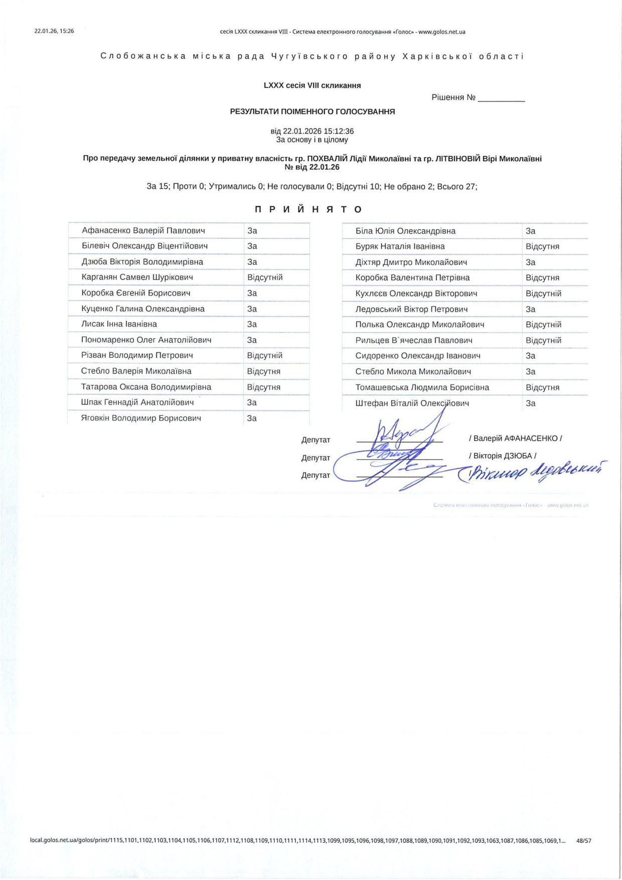 Відомості голосування до рішення сесії №3471 Про передачу земельної ділянки у приватну власність гр. ПОХВАЛІЙ Лідії Миколаївні та гр. ЛІТВІНОВІЙ Вірі Миколаївні